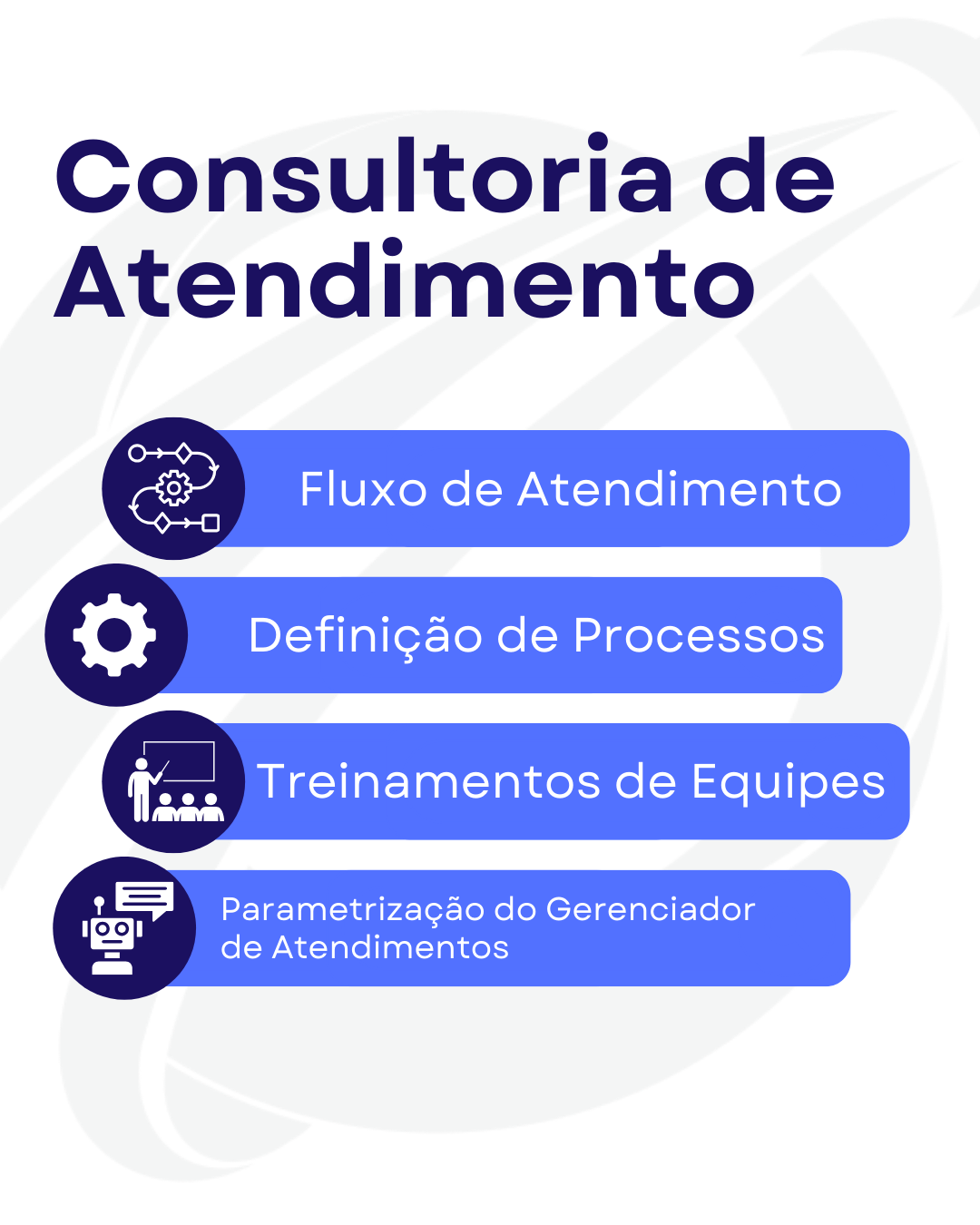 Eleve a performance do atendimento do seu negócio por meio do aprimoramento de processos, da estruturação de fluxos e da capacitação da equipe, com foco na excelência, satisfação e retenção do cliente.